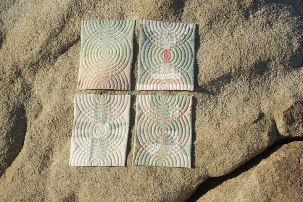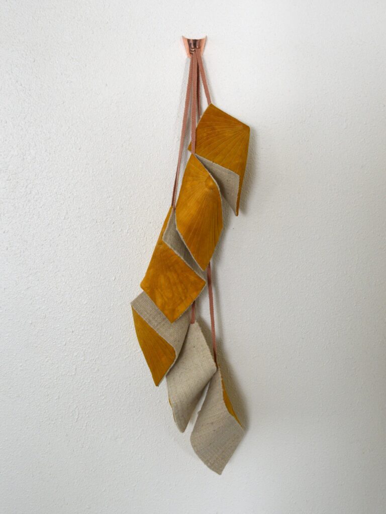 Anna’s foundation in fiber comes from generational knowledge, processes and techniques she developed allows her to create three dimensional sculptures that use traditional methods of craft, but speak to a contemporary audience. Her weavings and quilts are a true example of place based art, the patterns and designs she are inspired by landscapes, nature, and culture of the Colorado Plateau Desert. Most materials in her fiber work are locally created and sourced. She uses wool from a local farm that raises heritage breed sheep and prides themselves on humane and sustainable practices, spins the wool into yarn on a traditional foot-powered spinning wheel, and uses plants grown in her dye garden or ethically foraged in the surrounding desert to achieve a spectrum color.